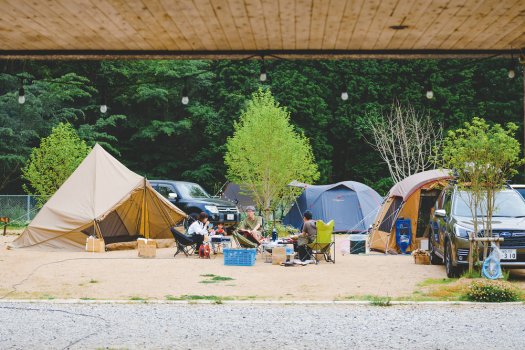 藤川椎茸園の徹さんとHIKONIWAの田中さんが手掛ける、旧英彦山レクリエーションセンター(スケート場)を利活用した全6サイトのプライベートキャンプ施設。1区画(15m×15m)の広々としたサイトで、車を乗り入れるオートキャンプスタイルでゆったりとした時間を楽しむことができる。各サイトに屋外電源を設置しており、ペットの同伴や貸し切りも可能。