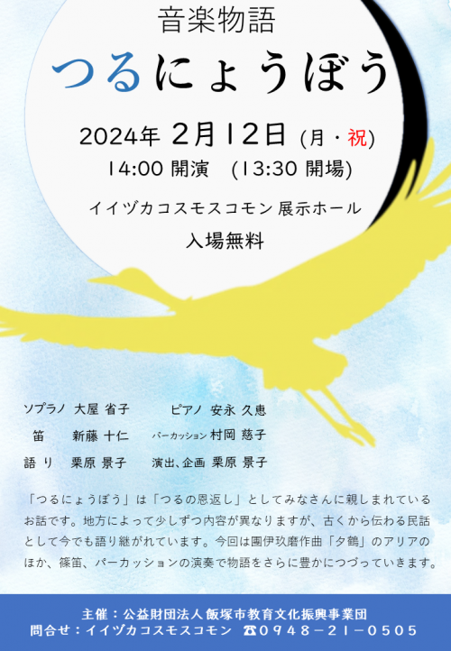 | お問い合わせ | (公財)飯塚市教育文化振興事業団 ℡ 0948-21-0505 Fax 0948-21-0606 |