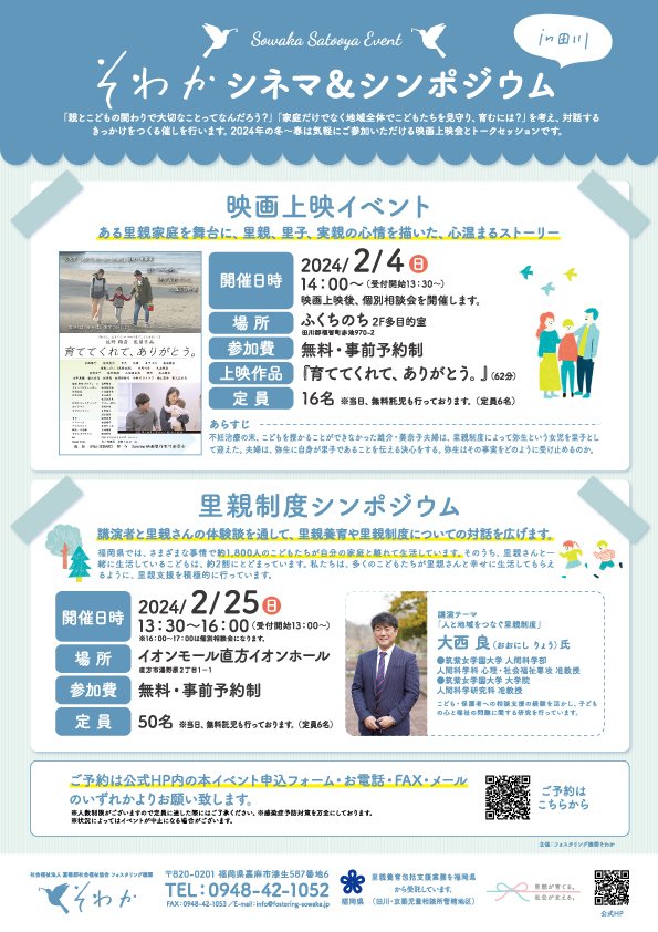 里親養育の支援を行う【フォスタリング機関そわか】による、自主上映会&シンポジウムを開催!