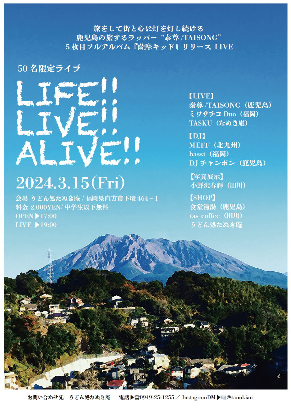 旅をして街と心に灯りを灯し続ける鹿児島の旅するラッパー"泰尊/TAISONG"5枚目フルアルバム『薩摩キッド』リリースLIVE!