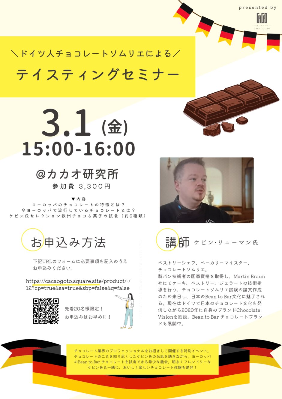| 関連サイト | https://cacaogoto.square.site/product/tasting-event/12?cp=true&sa=true&sbp=false&q=false |