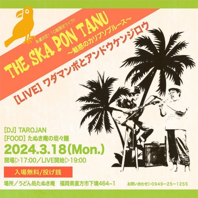 カリプソ、ジャマイカンミュージックにキューバン、ラテン、ブルースなどなどのルーツミュージックを一晩で感じることができると思います。
