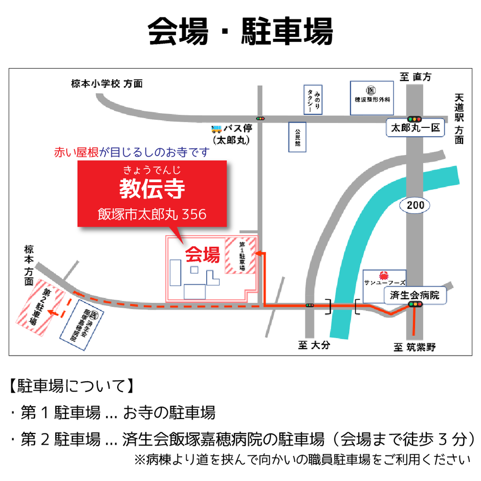 ★お車でお越しの方は、会場から徒歩2分の済生会病院の駐車場を使用可能です。