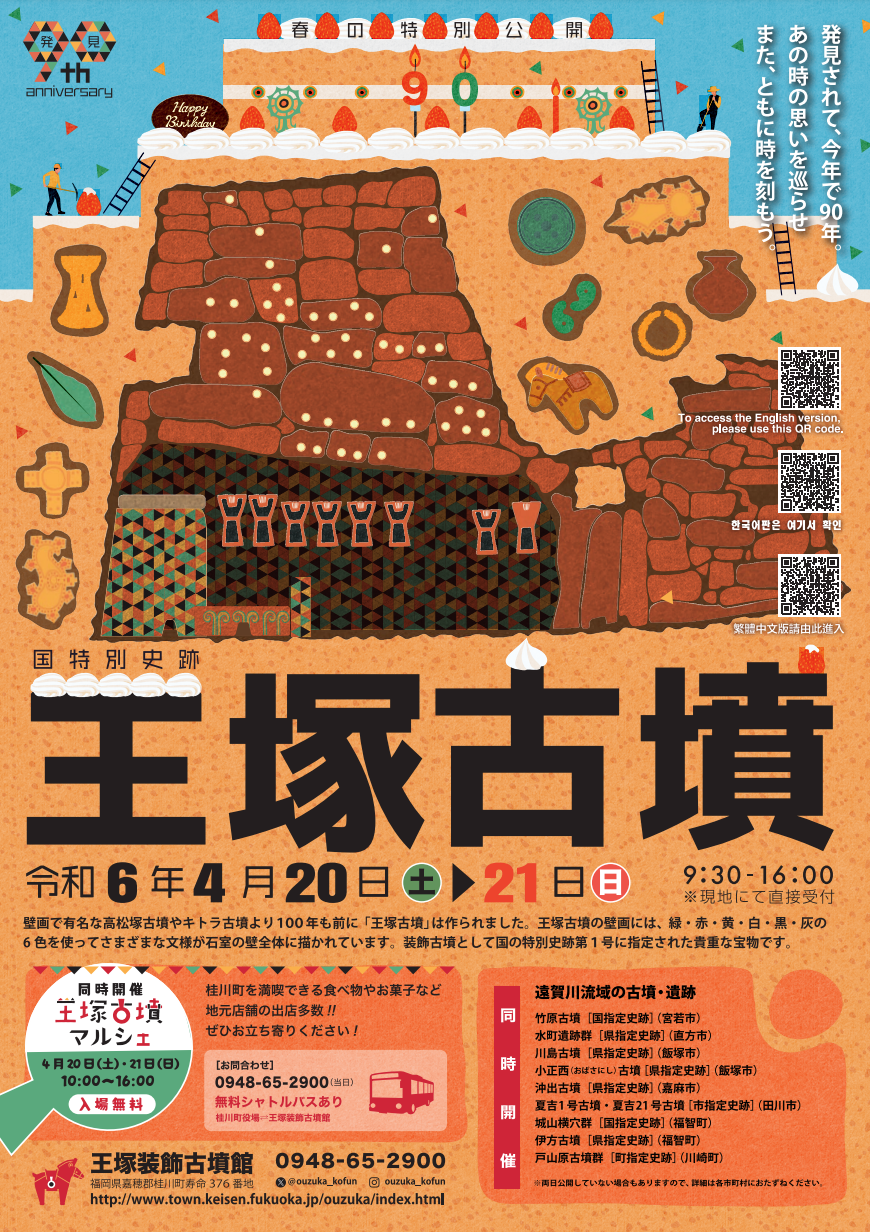 今年は王塚古墳発見90年目で、ポスターは誕生日ケーキ風となりました。