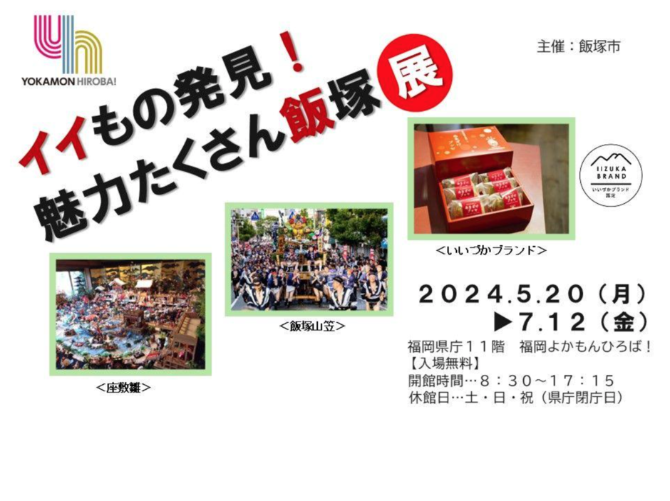福岡県庁11階「よかもんひろば!」で、飯塚にまつわる展示や「いいづかブランド」の紹介をする展覧会があっているようです!