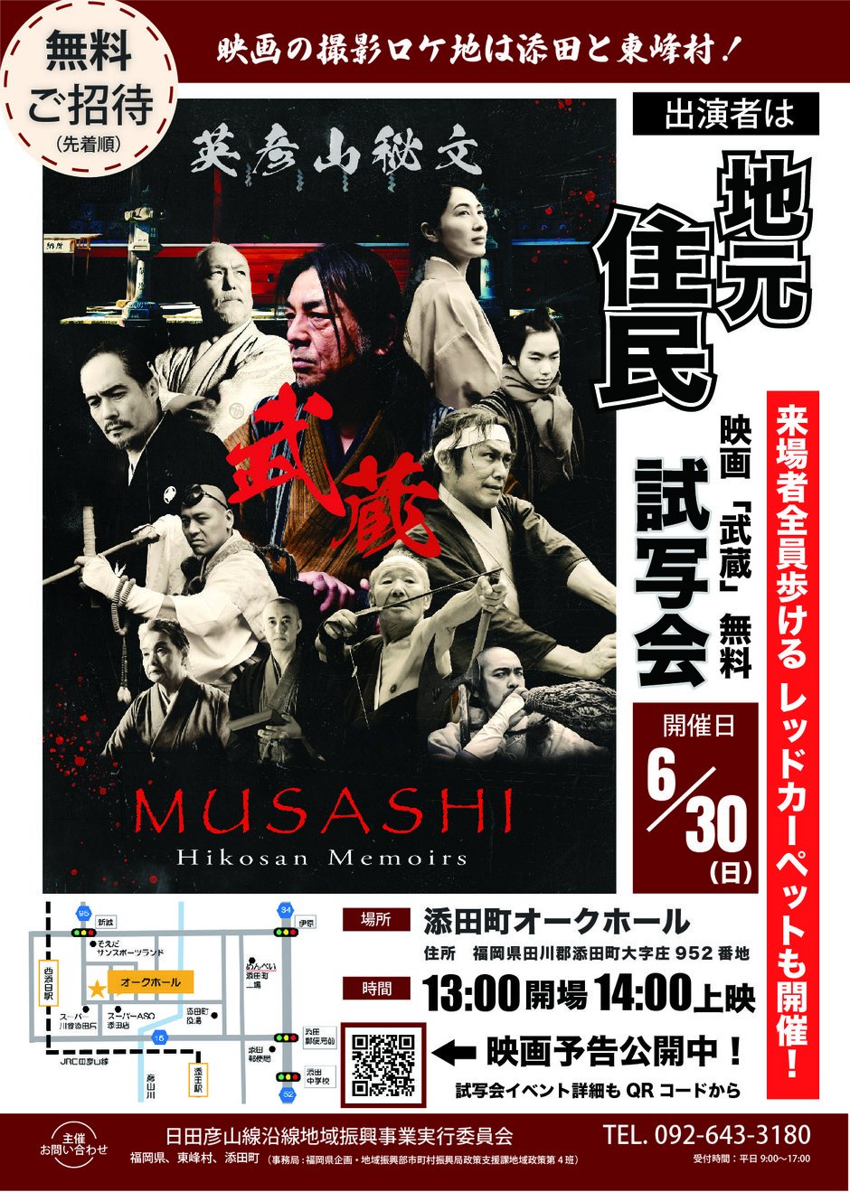 ハリウッドでの国際映画祭上映に先駆けて、映画「武蔵ー英彦山秘文ー」の特別試写会・レッドカーペットイベントを開催いたします!