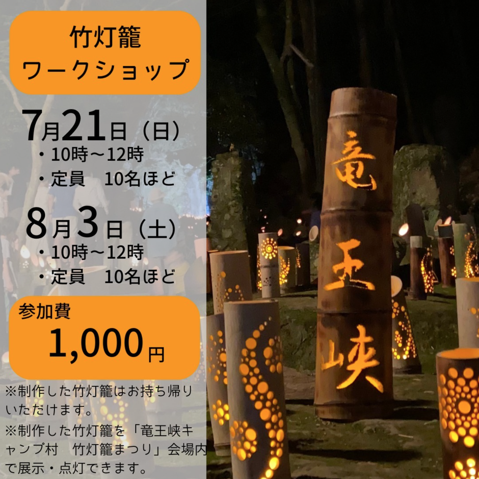 8月3日(土)に開催される「竜王峡キャンプ村 竹灯籠まつり」に使う竹灯籠を一緒に作るワークショップが開催されるようです!