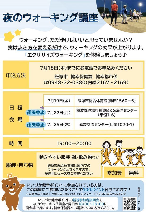 | 募集人数 | 申込:7月18日(水)まで。健幸保健課 0948-22-0380(内線2167~2169) |