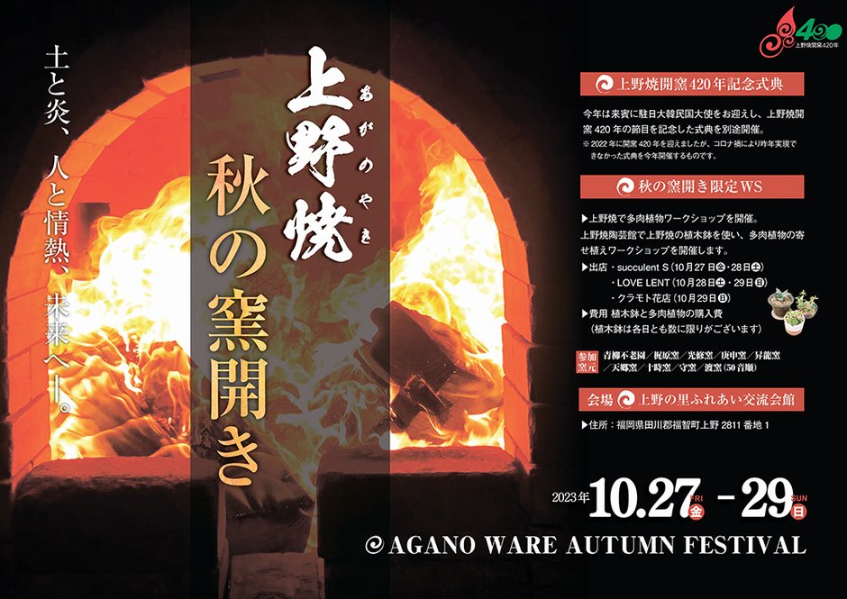 県内外から多くの陶芸ファンが訪れる、上野焼「秋の窯開き」を今年も開催。