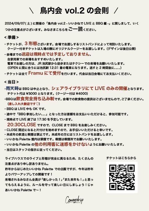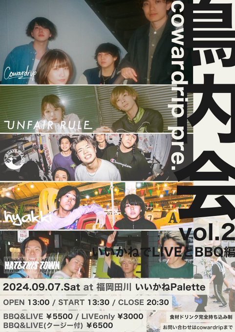 cowardrip pre. 鳥内会vol.2 -いいかねでLIVEとBBQ編-
