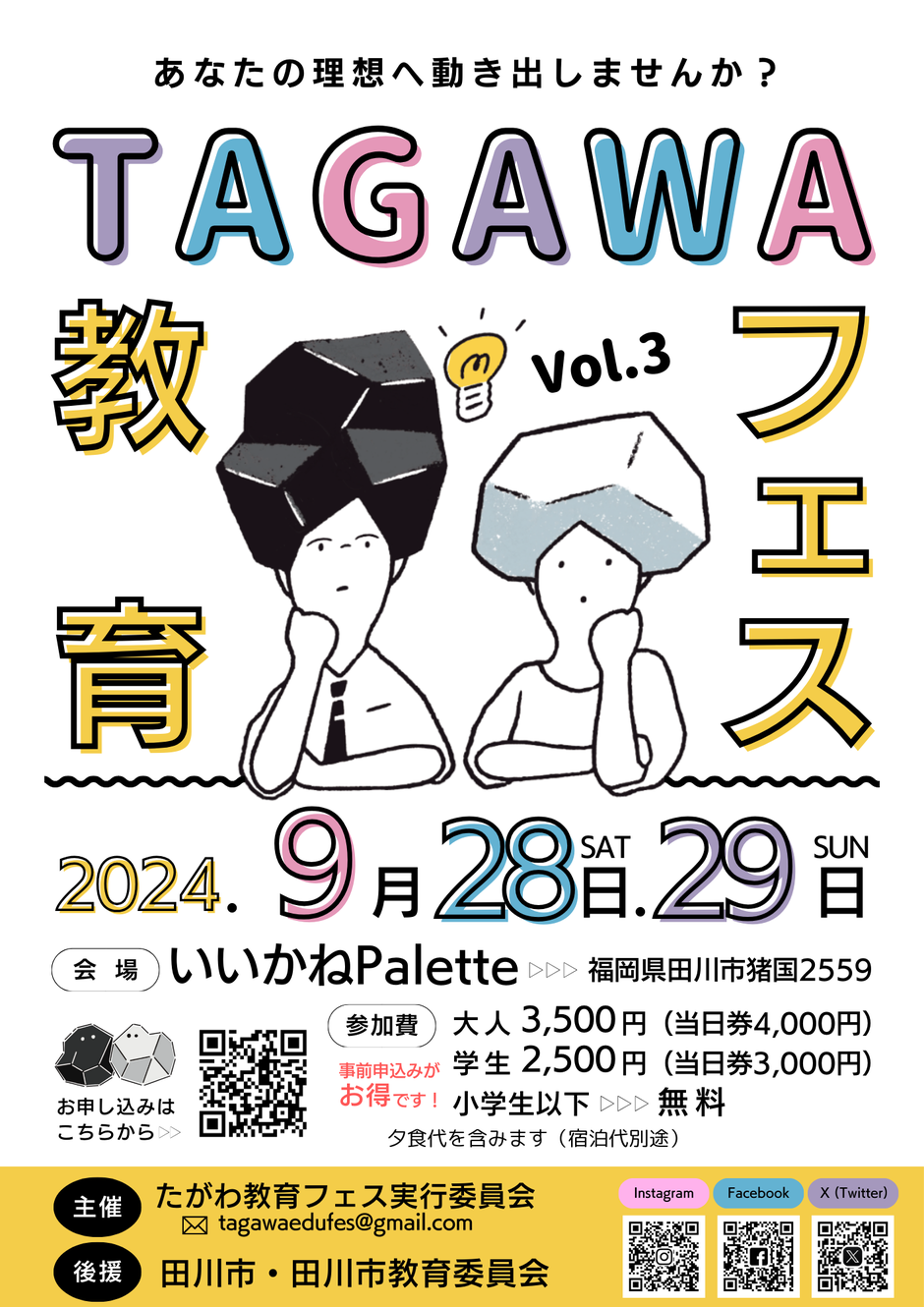 | お問い合わせ | 主催者:たがわ教育フェス実行委員会 メール:tagawaedufes@gmail.com 電話:070-9204-1703 |