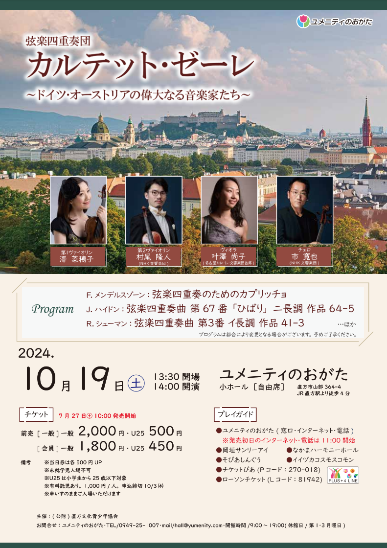 | お問い合わせ | 主催:(公財)直方文化青少年協会 お問合せ:ユメニティのおがた 0949-25-1007 hall@yumenity.com 9:00〜19:00 (休館日:第一・三月曜日) |