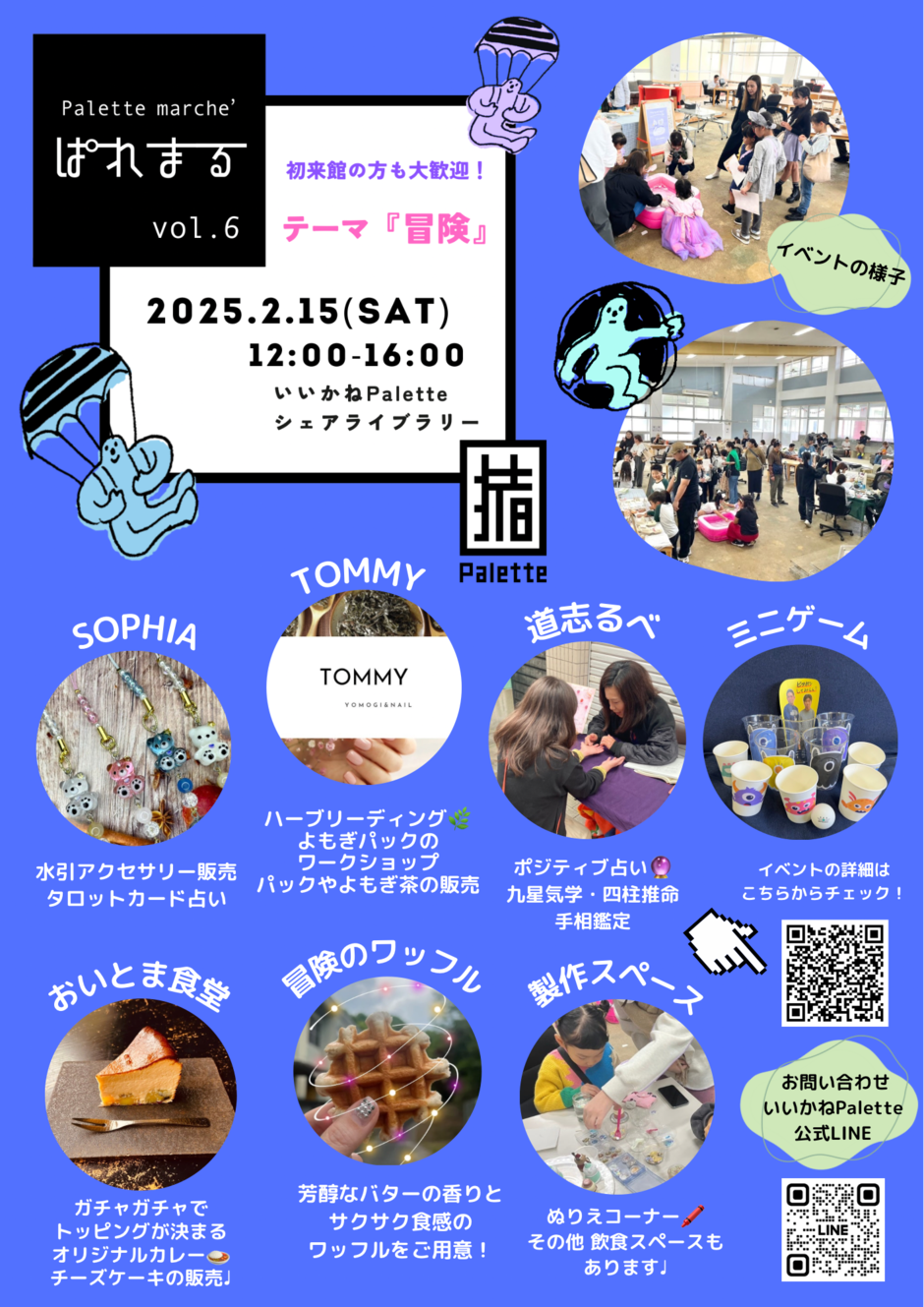 #いいかねPalette #いいかねパレット #田川市 #田川 #田川イベント #ぱれまる #マルシェ #占い #ハンドメイドアクセサリー #ハーブリーディング #焼き菓子 #カレー #チーズケーキ #ワッフル #家族連れ #おいとま食堂 #冒険のワッフル #道志るべ #SOPHIA #TOMMY #ワークショップ #ミニゲーム
