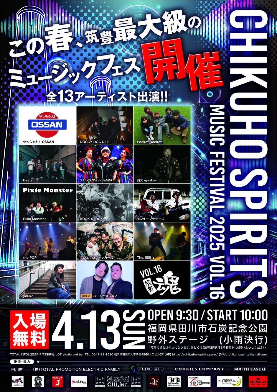 4月13日(日)田川市石炭記念公園で「筑豊魂-chikuho spirits-2025 MUSIC FESTIVAL VOL.16」が開催されます!