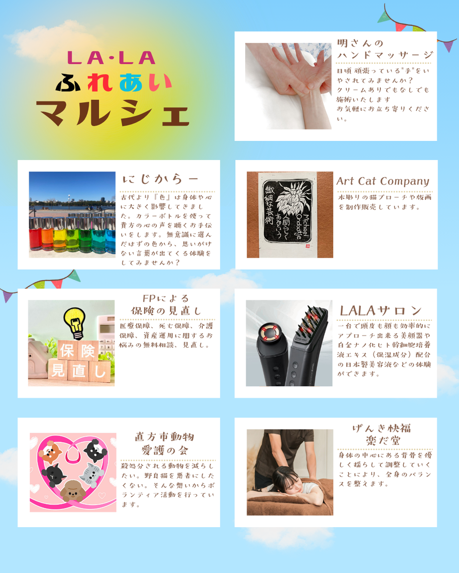 ハンドマッサージ・アロマクラフト・保険の相談・美容商品体験・整体が大集合!