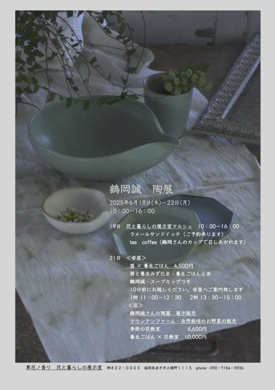 最新号の旧嘉穂町特集前編でもご登場いただきました、鶴岡誠さんの個展が直方・上頓野の「草花ノ香リ」で開催されます!