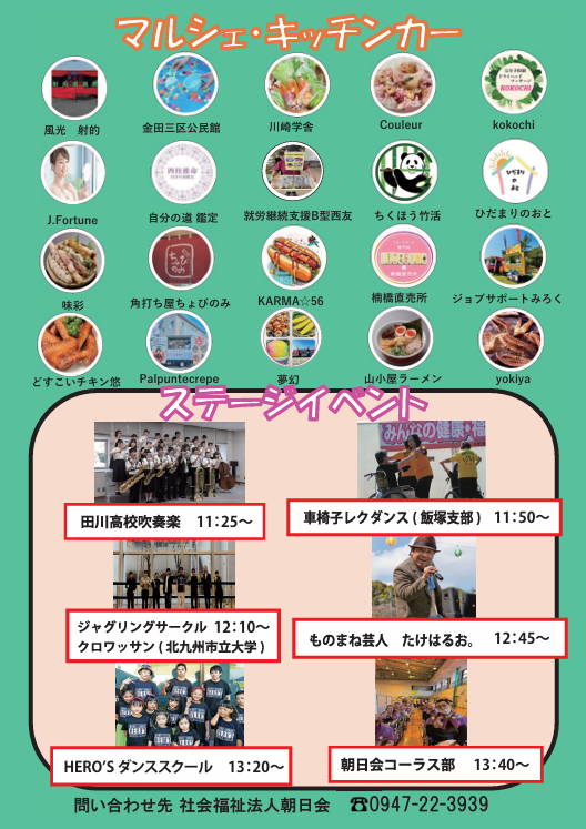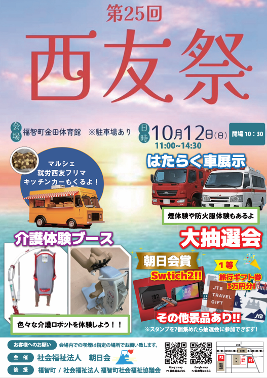 | お問い合わせ | 社会福祉法人朝日会 障害者支援施設西友苑 TEL 0947-22-3939 FAX 0947-22-6100 |