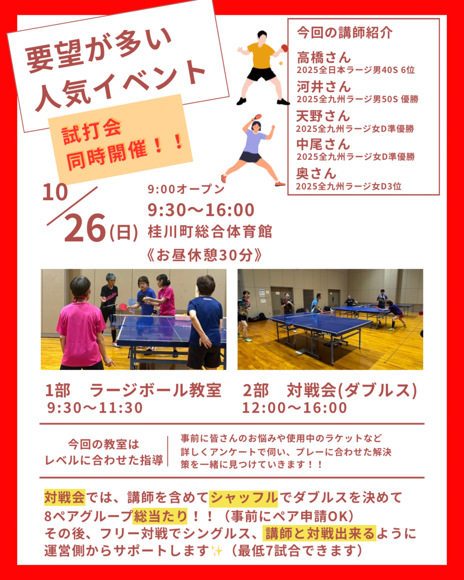 ※ラージボール教室は満員になりました!