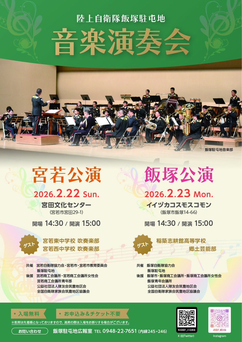 2月22日(日)宮田文化センターで陸上自衛隊飯塚駐屯地音楽演奏会を開催します。