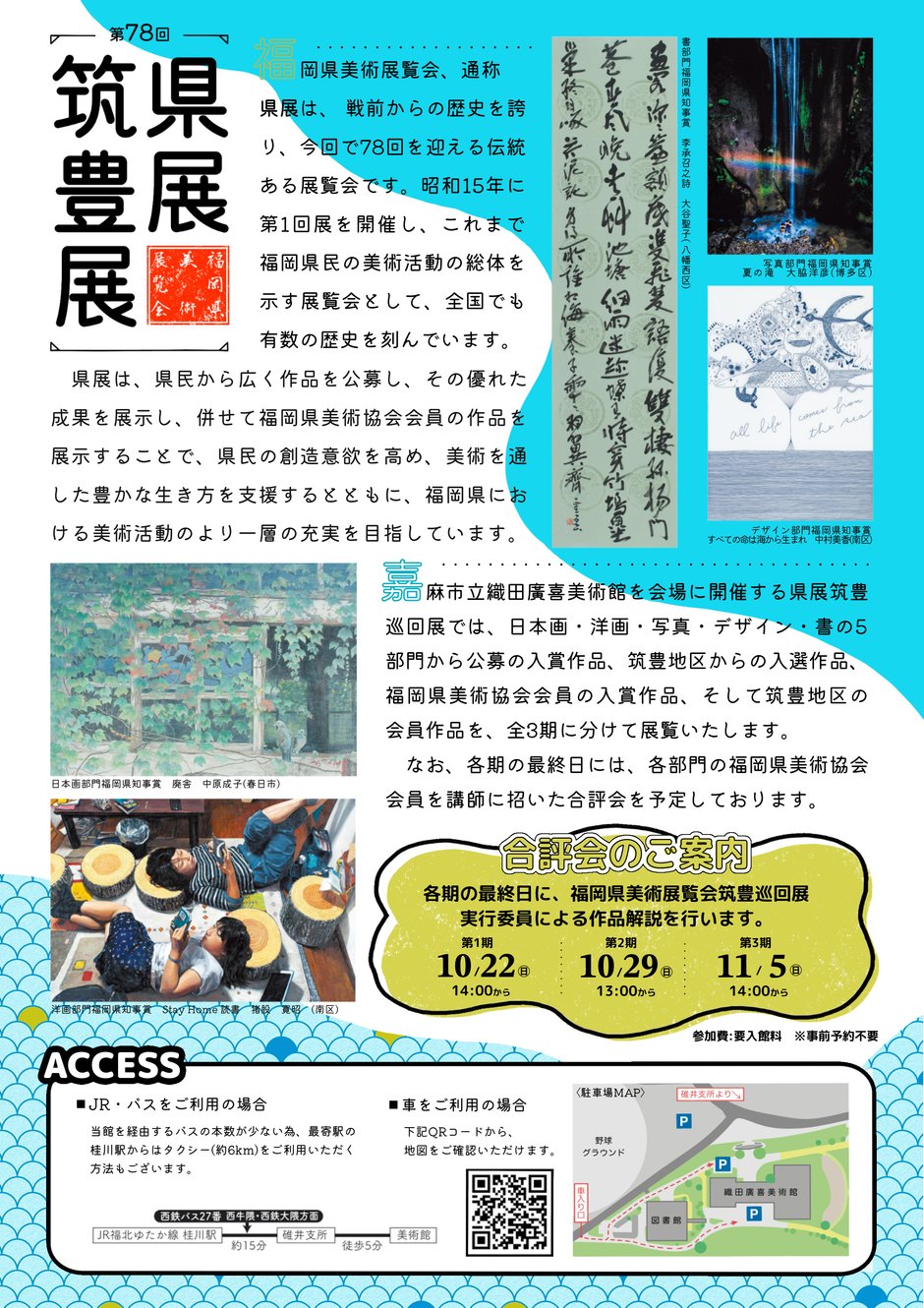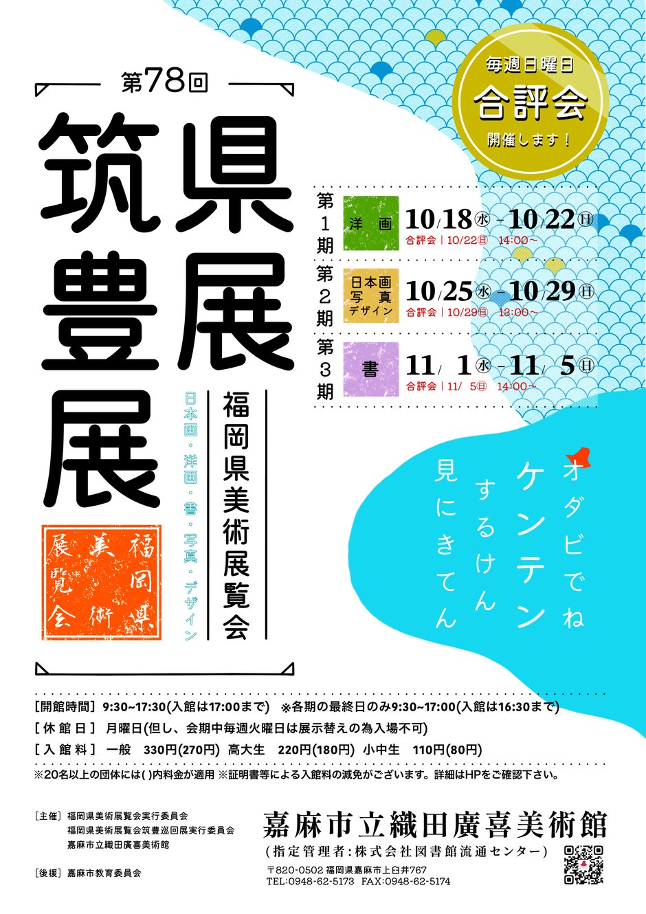 織田廣喜美術館を会場に開催する筑豊巡回展では、日本画、洋画、写真、デザイン、書の5部門の入賞・入選作品をはじめ、筑豊地区の会員作品を展示するんだとか!