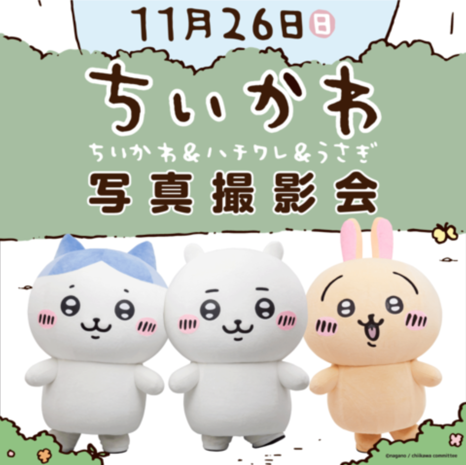11月26日(日)はちいかわ、ハチワレ、うさぎの御三方との写真撮影会もあるんだとか〜!