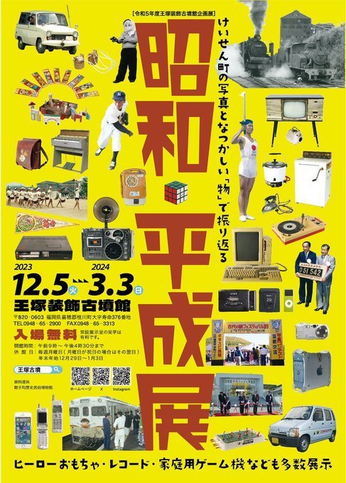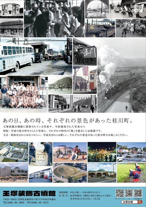 王塚装飾古墳館で保管されている写真や、今回提供された写真から昭和・平成の桂川町をとらえた写真を中心に、それぞれの時代のなつかしい「物」も展示します。
