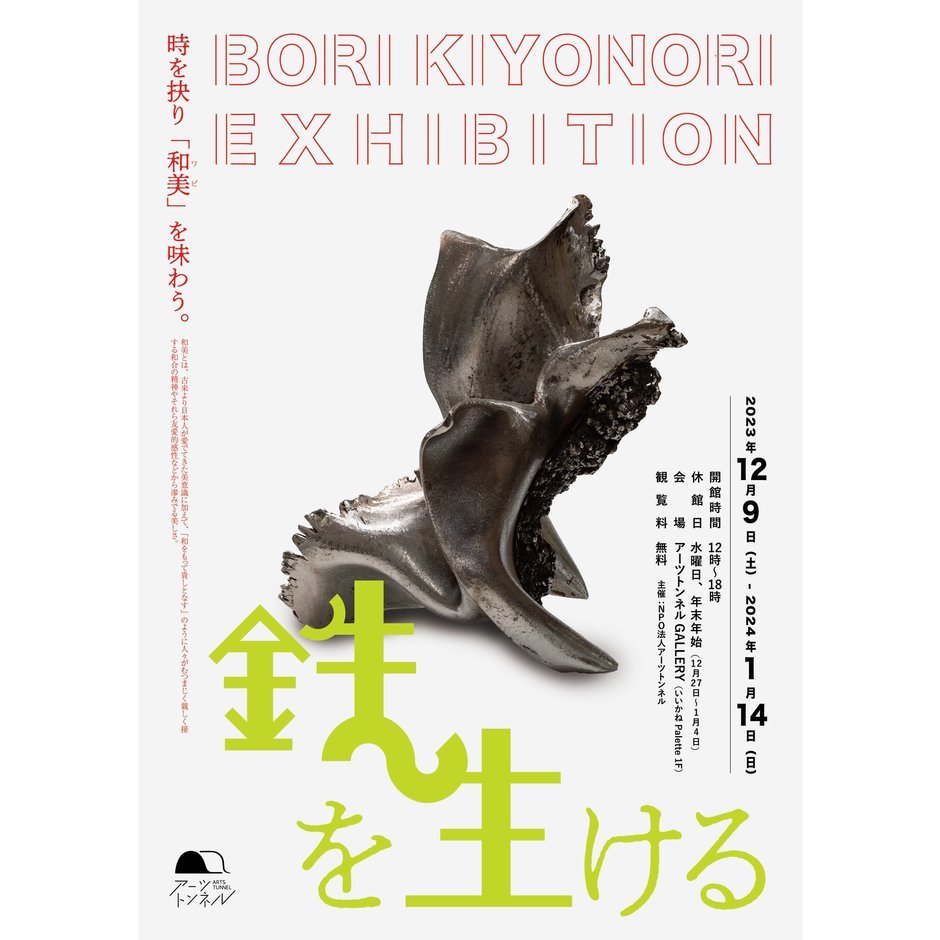 わが国の鉄工業を支えてきた北九州。この街の工場やスクラップヤードには、視点を変えると、まるで生きているのではないかと疑うほどに美しい鉄が存在しており、今回、母里はその鉄を新たに「見立て」ました。「和美」とは古来より日本人が愛でてきた美意識であり、人々がむつまじく親しく接する和合の精神やそれら友愛的感性などから滲みでる美しさのことであると母里は言います。この展覧会では、鉄を通じて人の歴史や世界と向き合ってきた母里が、その時々の人の営みに翻弄され、破棄されてきた鉄を生けることで、その「時」を抉ります。この土地から世界に向けて感じる事のできる「鉄」を味わっていただければと思っています。