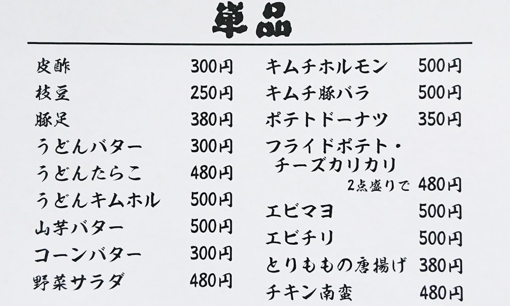 メニュー(リスト)