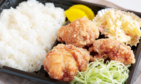 100%国産鶏を使った3種類の唐揚や、鶏の旨味をギュッと閉じ込めた“とりめし”が大人気!お弁当は¥360〜。