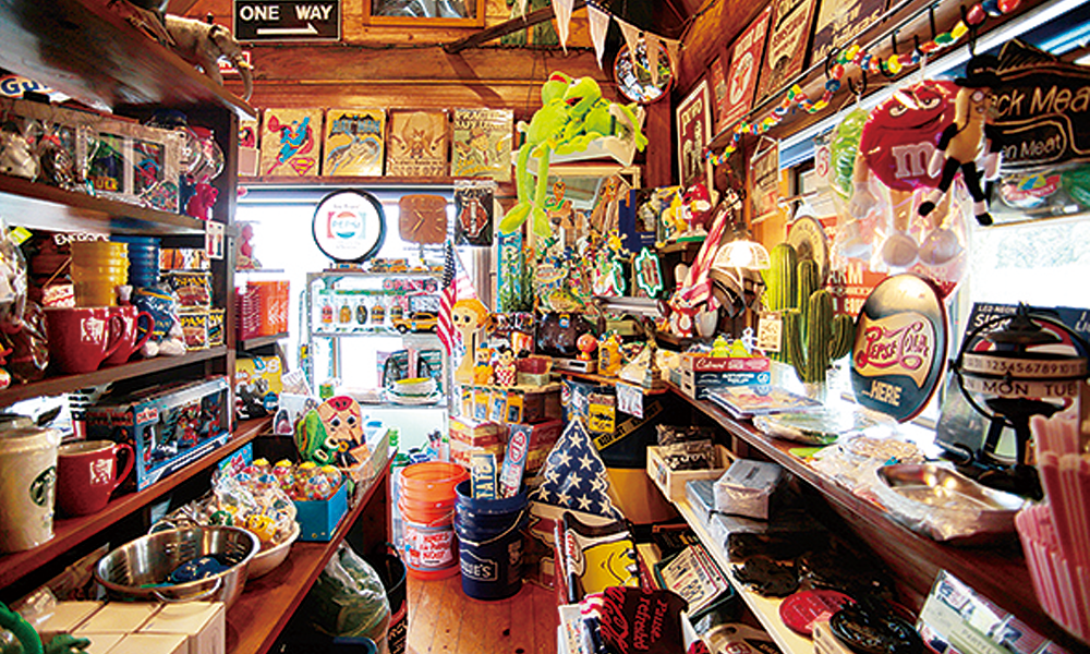 アメリカン雑貨に魅了され、自身でオリジナルプレートも手掛ける店長。直々にセレクトした品々に心躍る事間違いなし!目印はログハウスと恐竜。