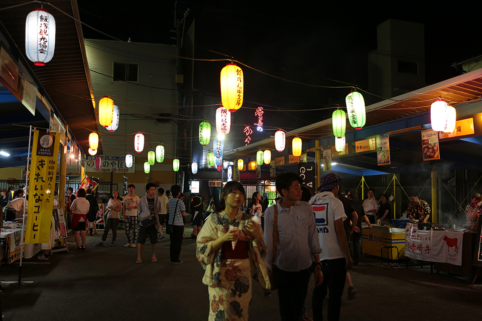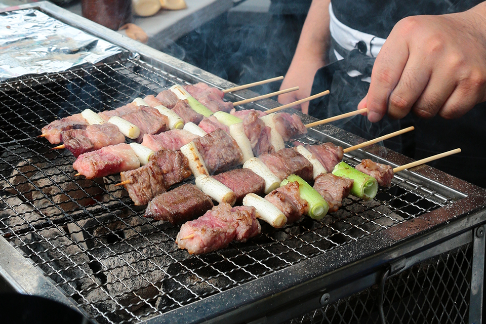 注目のブランド牛からスイーツまで全16店舗が提灯と月の明かりの下に集結した。