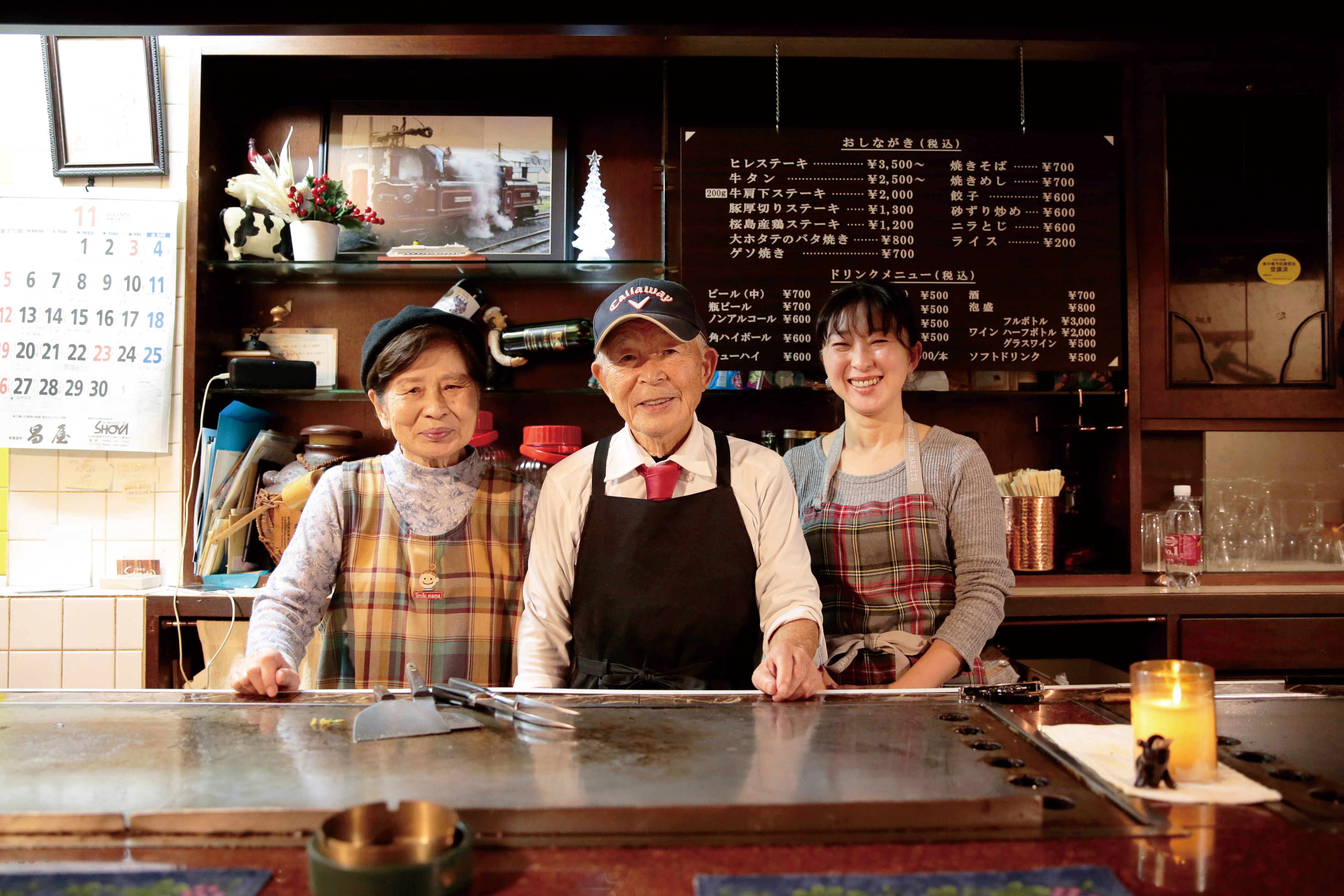 「初めてお店を構えたのは東京オリンピックの年。当時は『ママ』というスナックでした」とママ・和予さん。マスター・耕八さんの作るステーキが好評だったことから、より飲食に力を入れた現在の営業スタイルに。