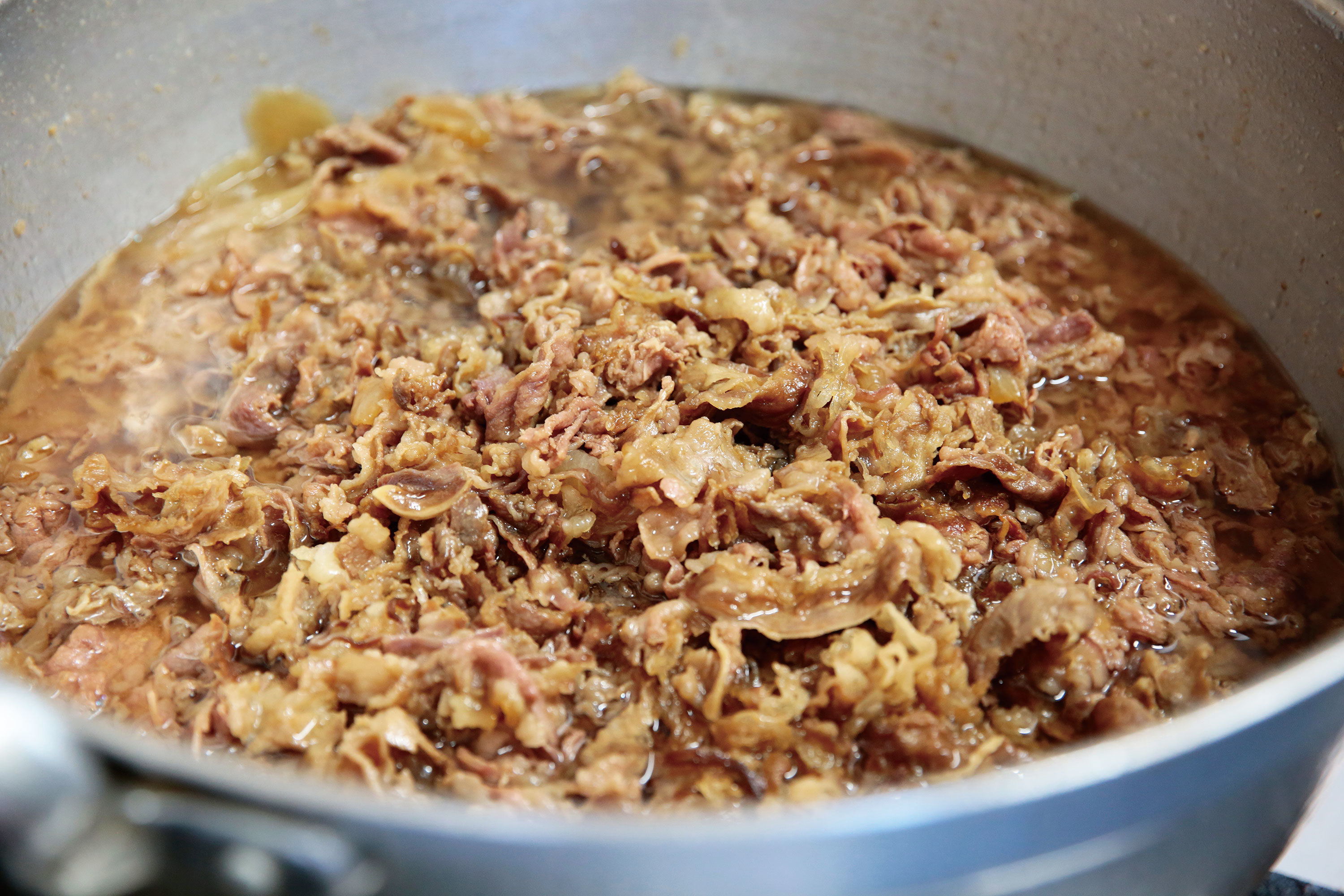 「一度に多く煮込む方が美味しいんですよ。一気に5キロ煮ます。そうすることでそれぞれの牛肉が持つ旨味がお互いに味付けをし合う。お米もちょこっと炊くよりたくさん炊いた方が美味しいのと同じです」。これまでただひたすら旨い! とかきこんでいたが、やはりその一杯の中には愛される工夫が丁寧に施されていた。「一見わかりにくいですけど、柔らかくなるまで炒めたタマネギも実はたくさん入ってるんです。更に甘みが出る。筑豊の人は昔から甘めの味付けが大好きですからね。その子どもや孫も大体みんな甘くて濃い味が好きになっていくんですよ」。