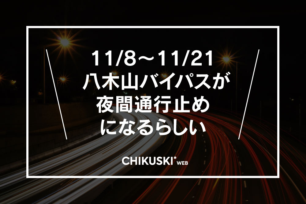 11月8日〜11月21日まで八木山バイパスが夜間(22時〜5時)通行止めになります。