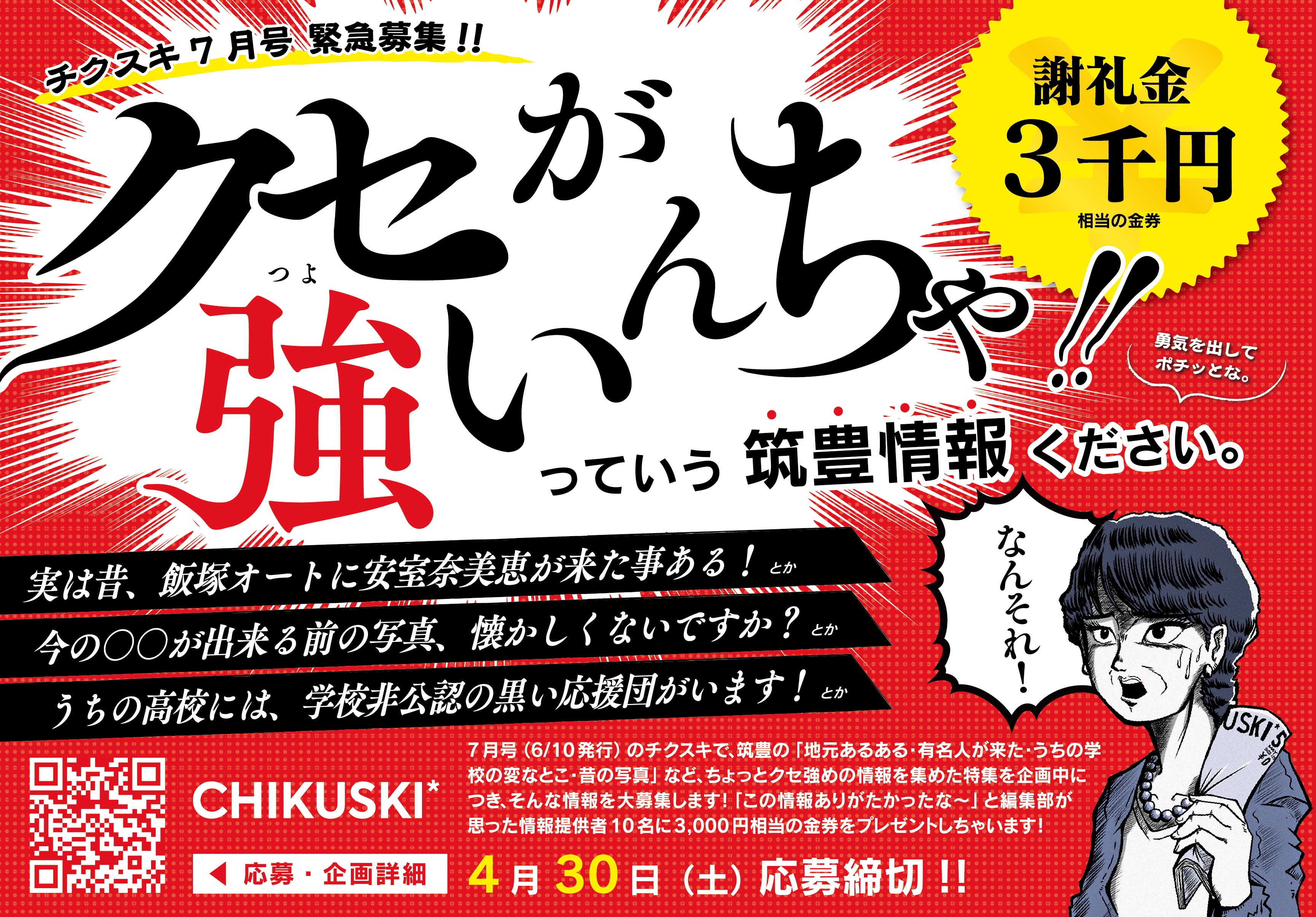 6月10日発行のチクスキの企画のあわせて、筑豊のクセが強い情報だったり、あるあるだったり、とにかく色んな情報を大募集中です!