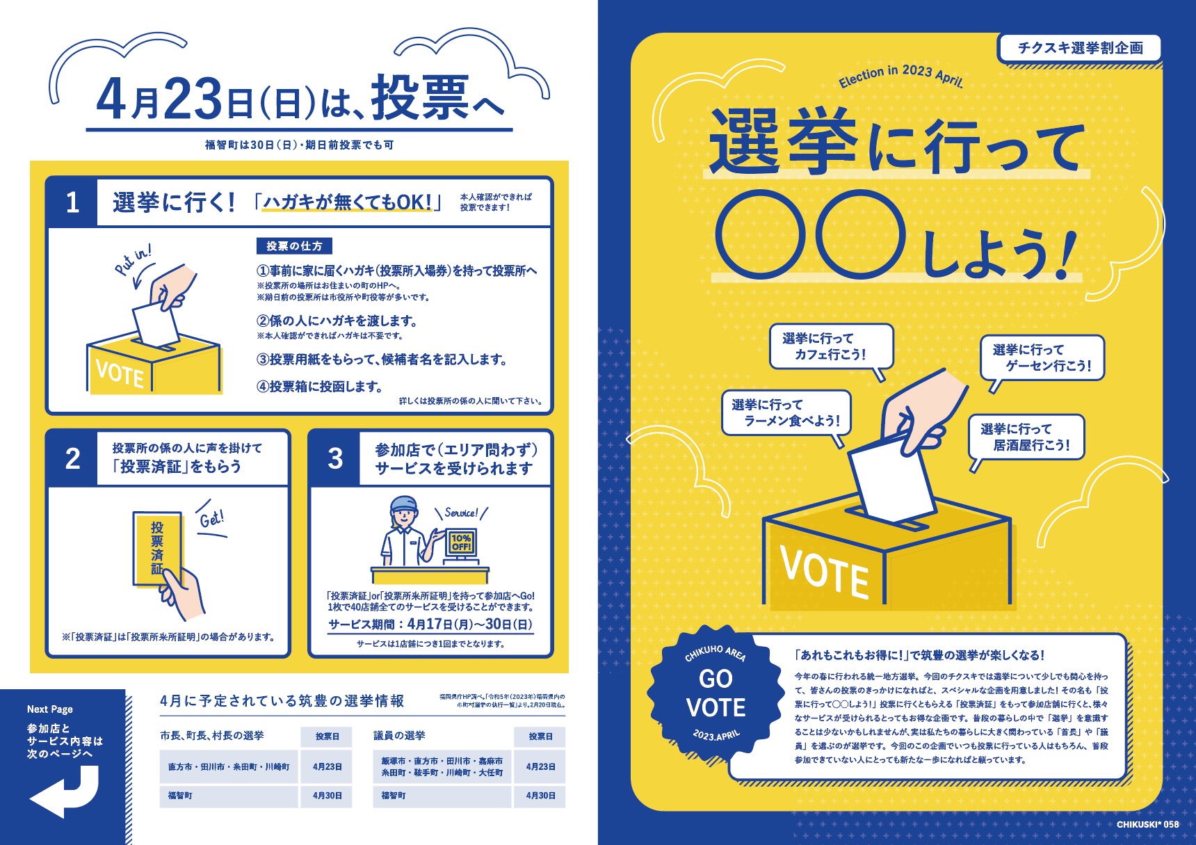 パン屋さんや珈琲店など注目の新店舗6店を紹介した【話題の新店、レコメンド!】や、「あれもこれもお得に!」で筑豊の選挙が楽しくなる【投票に行って◯◯しよう!】、集まりごとが増えるこれからの宴会シーズンにオススメのお店をピックアップした【春の宴会特集】さらに、キレイをアップデートする美容情報を集めた【BEAUTY Selection】などなど!